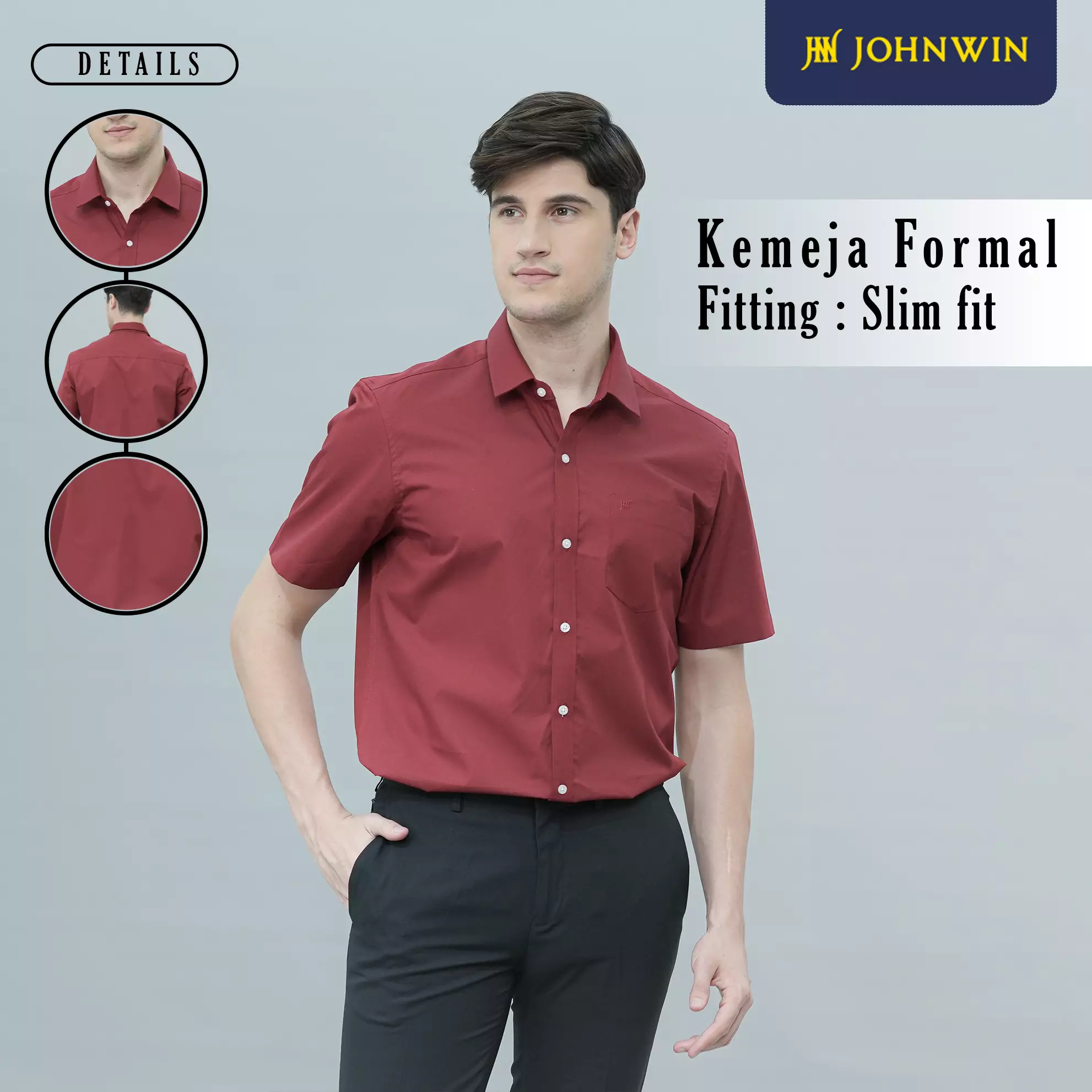JohnwinJohnwin - Kemeja Formal - Slim Fit - Lengan Pendek - Opulence Collection - Model Basic - Blue/Red/Gey/Olive/Black/White - Multi Produk - FSH.650.K393439600.00219800.00