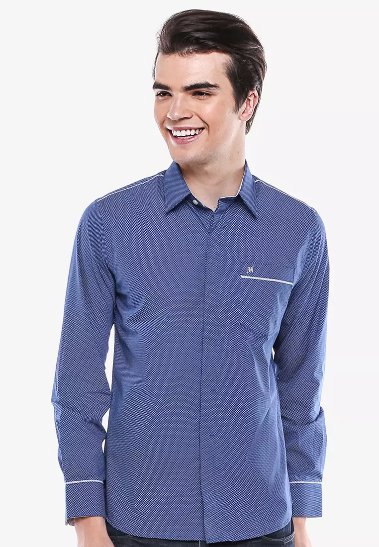 JohnwinJohnwin - Regular Fit - Kemeja Formal - Biru - Motif Polkadot - Lengan Panjang.322600.00161300.00
