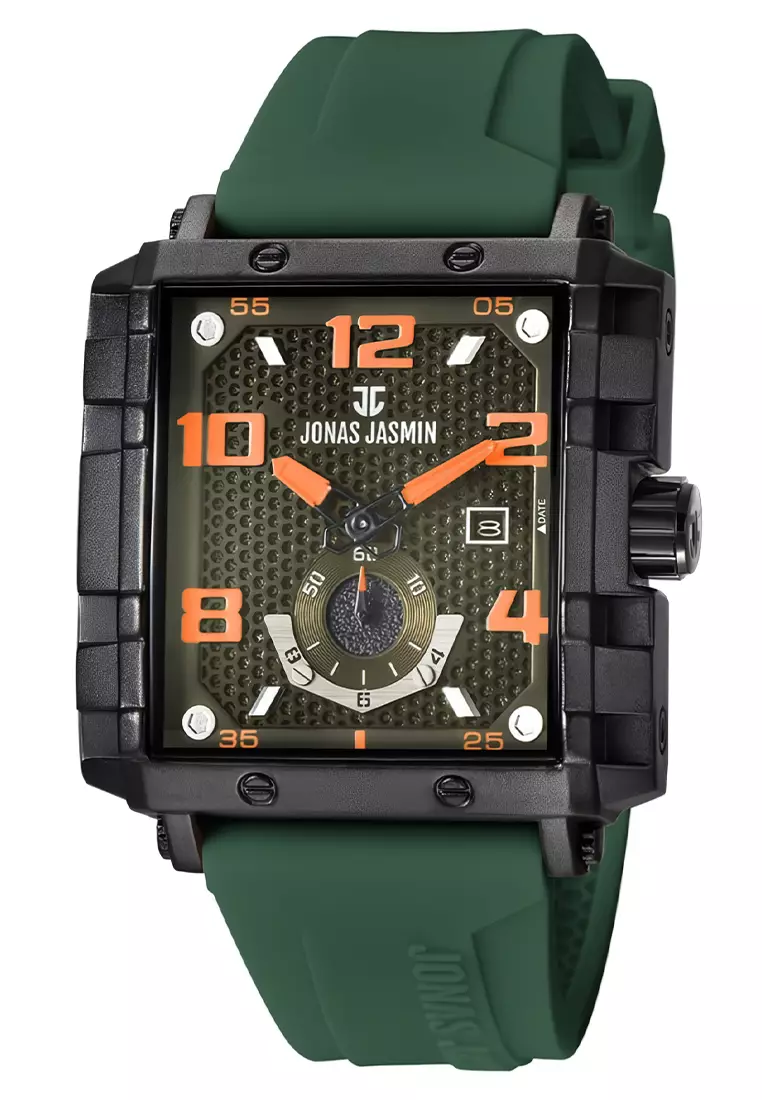 Jonas Jasmin - Jam Tangan Analog Pria - Black - Green Rubber Strap - JJ-5328M-F