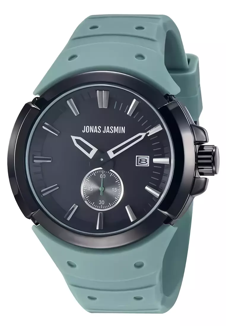 Jonas Jasmin - Jam Tangan Analog Pria - Black - Teal Rubber Strap - JJ5304M-BLC
