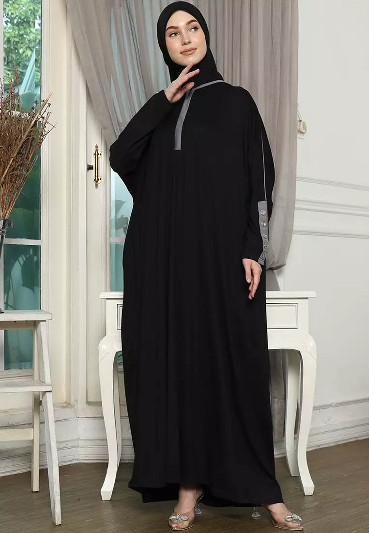 JV Hasanah Abaya Rayon Dress Shireen Black Grey | Gamis Abaya Oversize Busui Lengan Batwing Polos