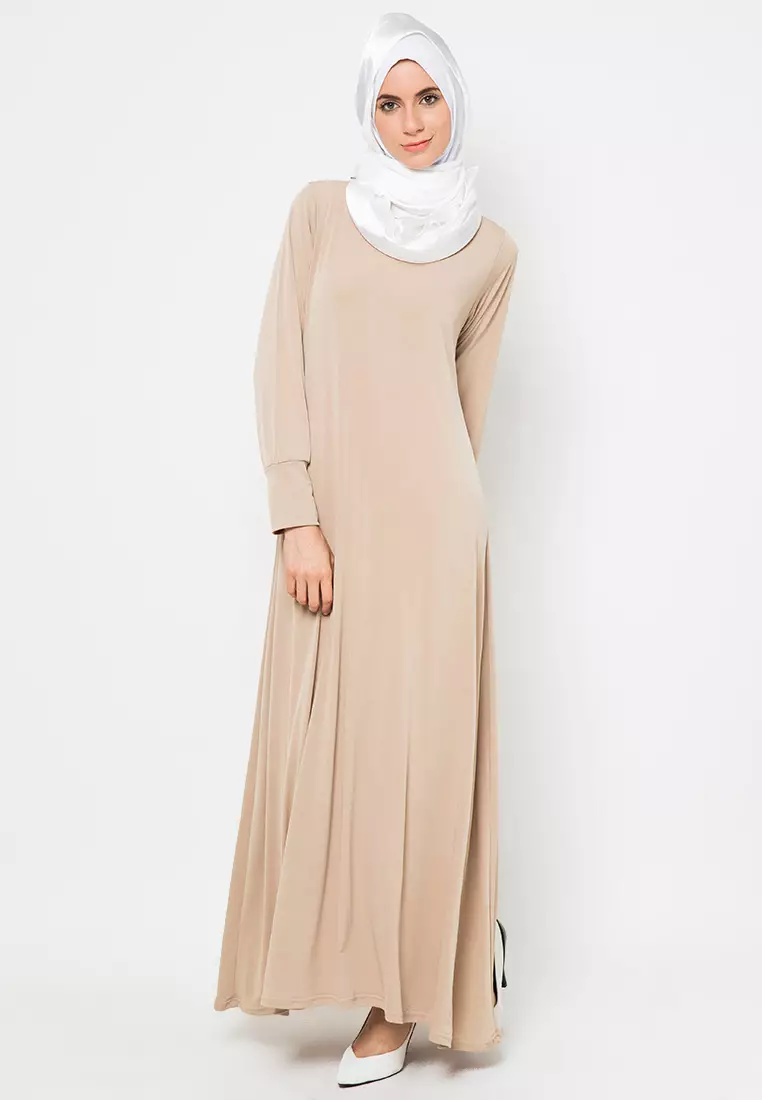 JV Hasanah Alia Basic Dress Mocca | Gamis Polos Jersey Wanita Daily