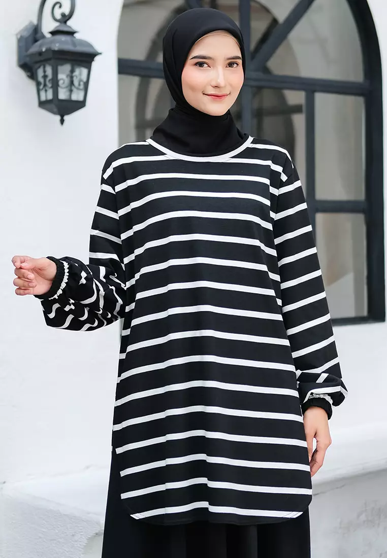JV HasanahJV Hasanah Baju Kurung Oval Big Stripe Black | Atasan Baju Kurung Oval Salur Besar Kaos Adem255000.00125000.00