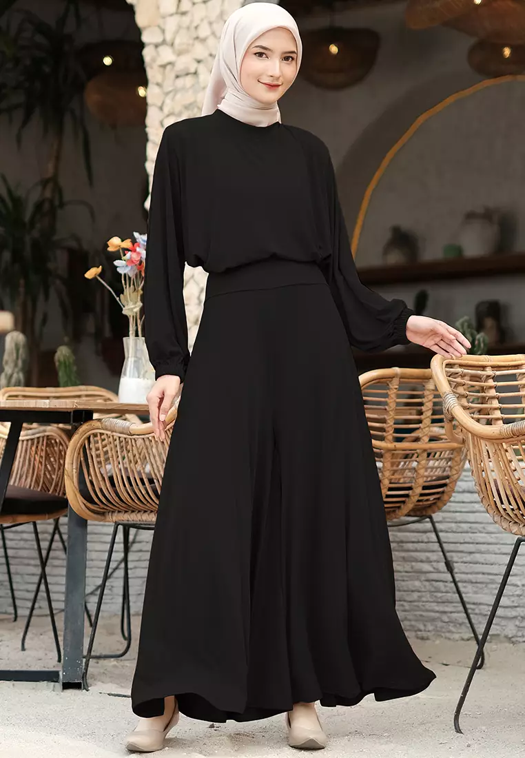 JV Hasanah Oneset Culottes Jersey Baju Kurung Black - Setelan Kulot Jersey Baju Kurung Jumbo
