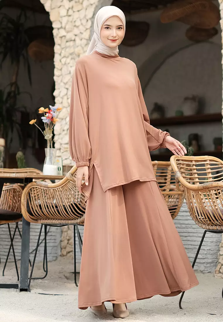 JV Hasanah Oneset Culottes Jersey Baju Kurung Millo - Setelan Kulot Jersey Baju Kurung Jumbo