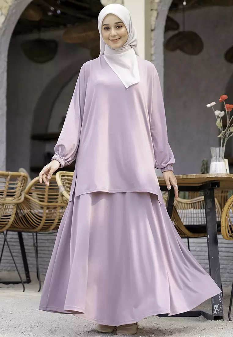 JV Hasanah Oneset Skirt Jersey Baju Kurung Lilac - Setelan Rok Jersey Baju Kurung Jumbo