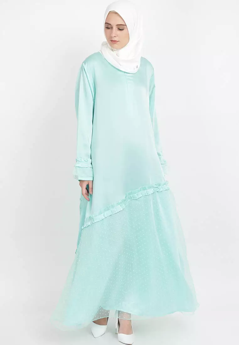 JV Hasanah Sahara Snow Dress Mint | Gamis Roberto Cavali Organza