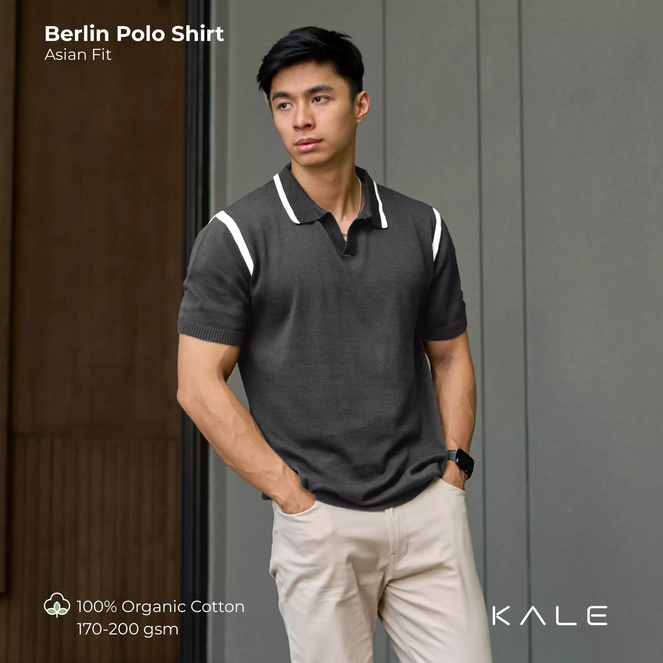 Kale BERLIN Dark Grey / Polo Shirt Pria / Atasan Kaos Polo Rajut Pria / Kaos Pria / Baju Kaos Pria