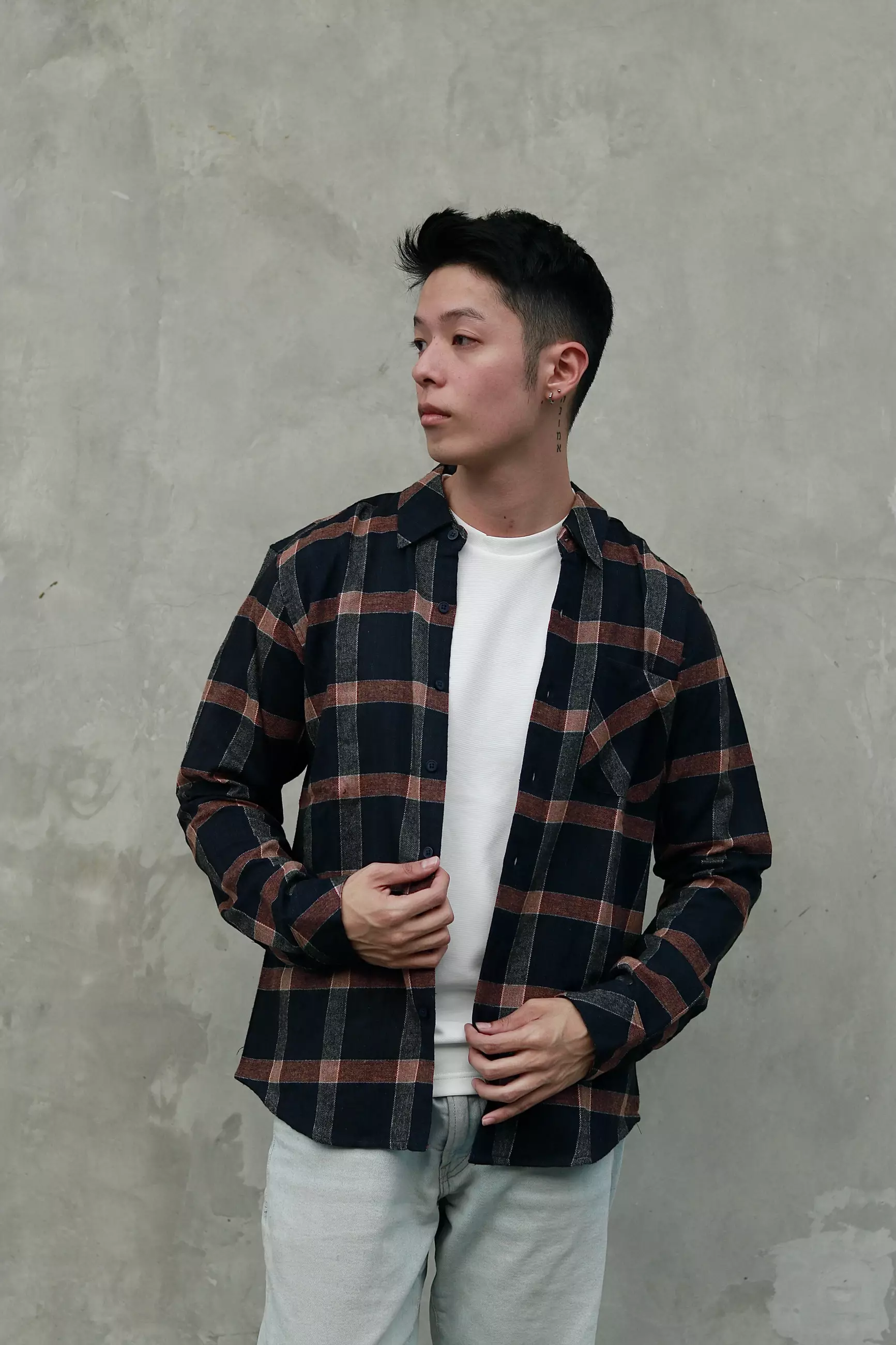 Kale Kenley Brown/Kemeja Flanel Pria Lengan Panjang