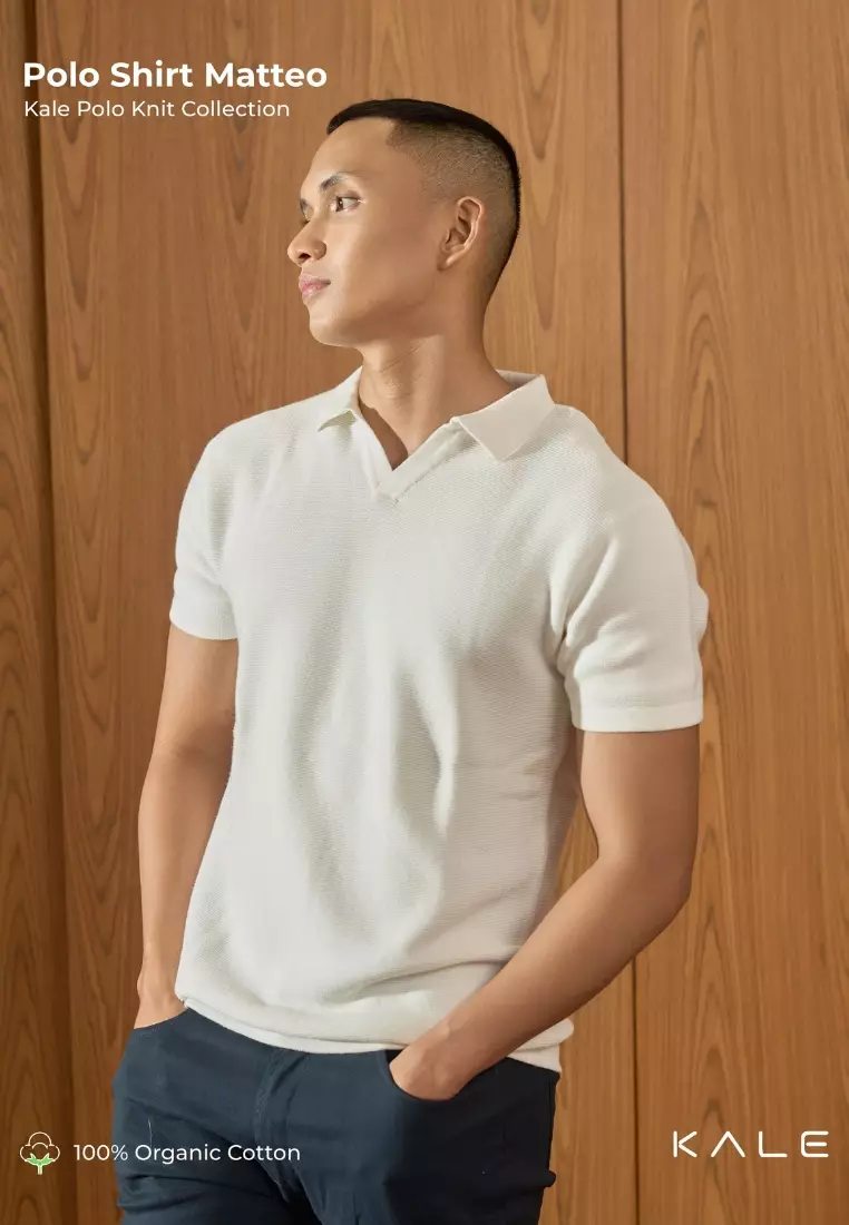 Kale Matteo White / Kaos Rajut Polo Lengan Pendek Pria