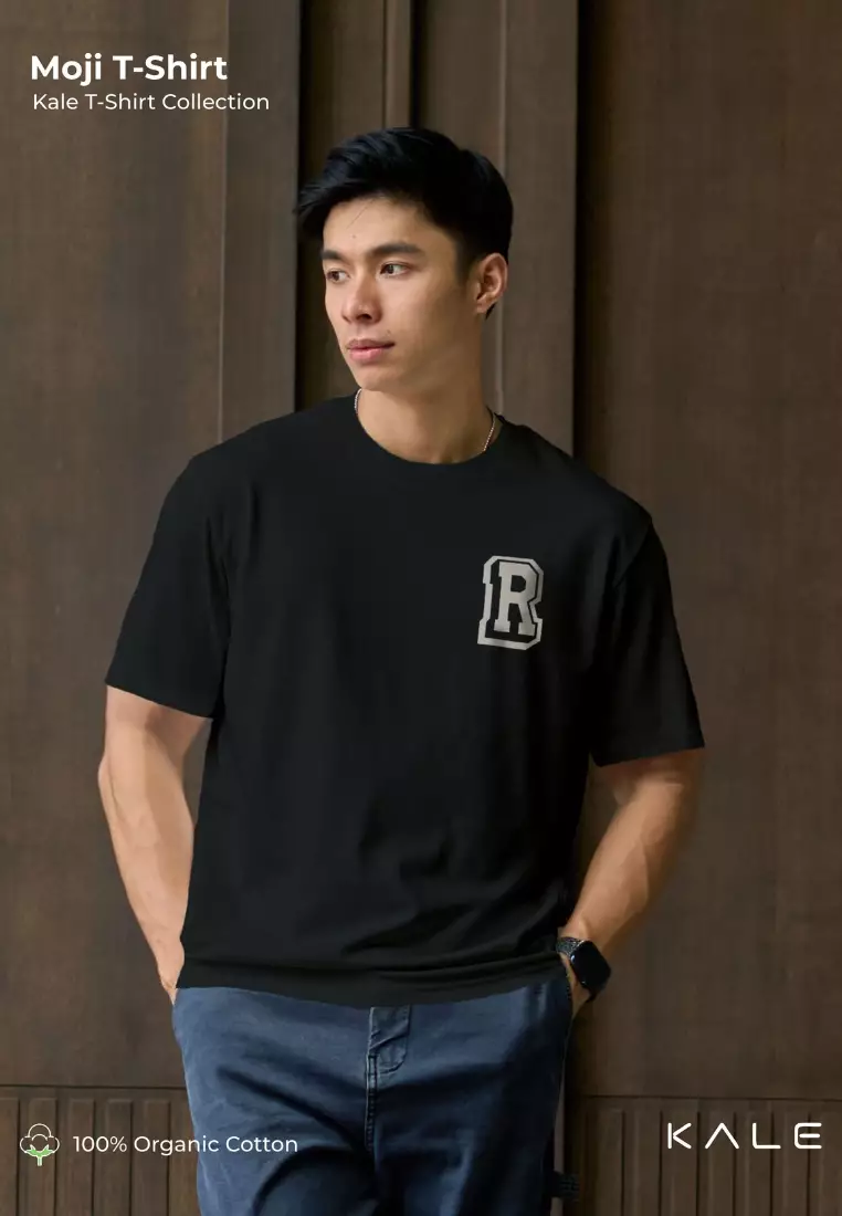 Kale Moji Black "R" / atasan kaos pria / baju kaos pria / kaos basic pria / kaos boxy fit / kaos korea