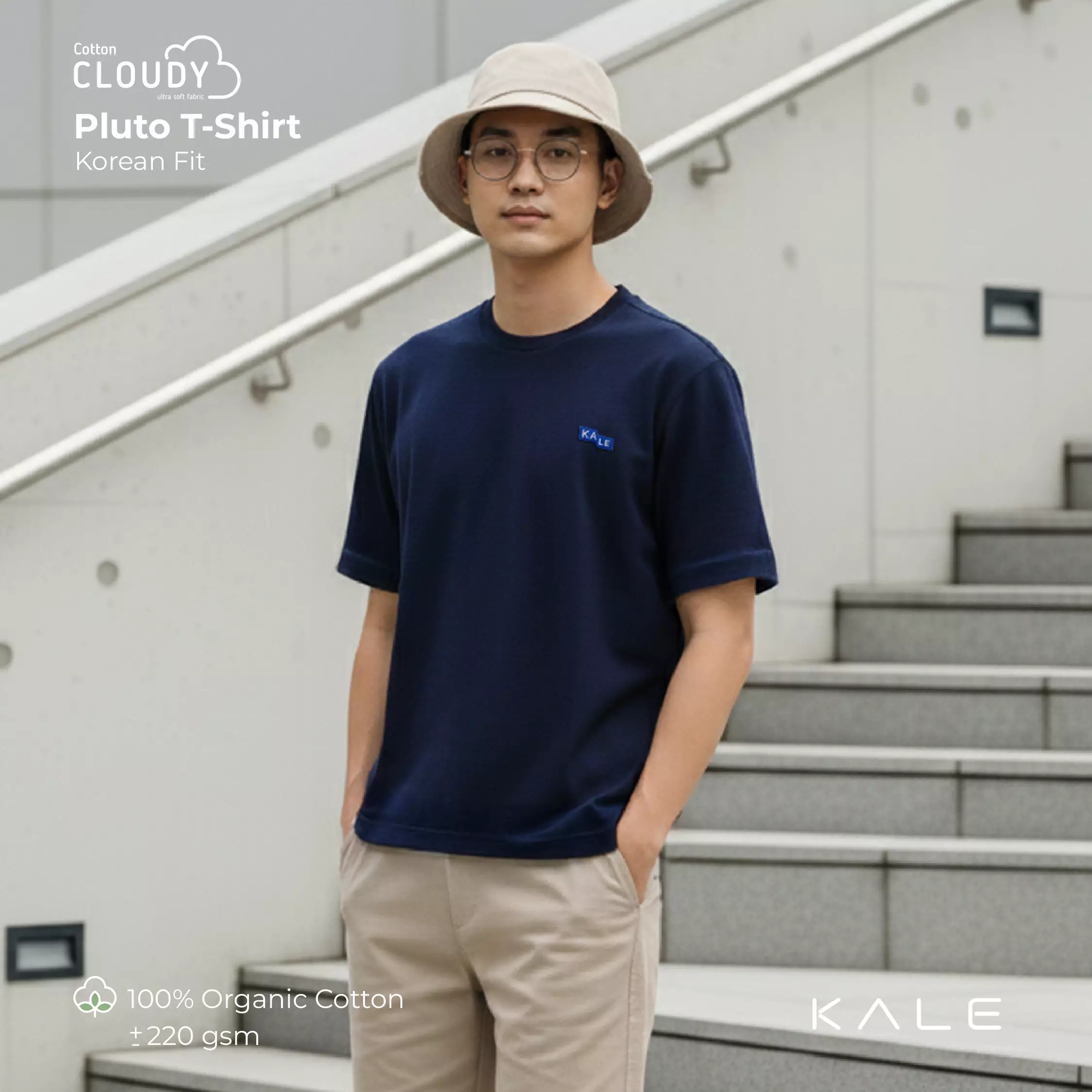 Kale PLUTO NAVY T-shirt Cotton Cloudy Boxy Fit - Kaos Korea - Atasan Kaos Pria - Kaos Basic Pria