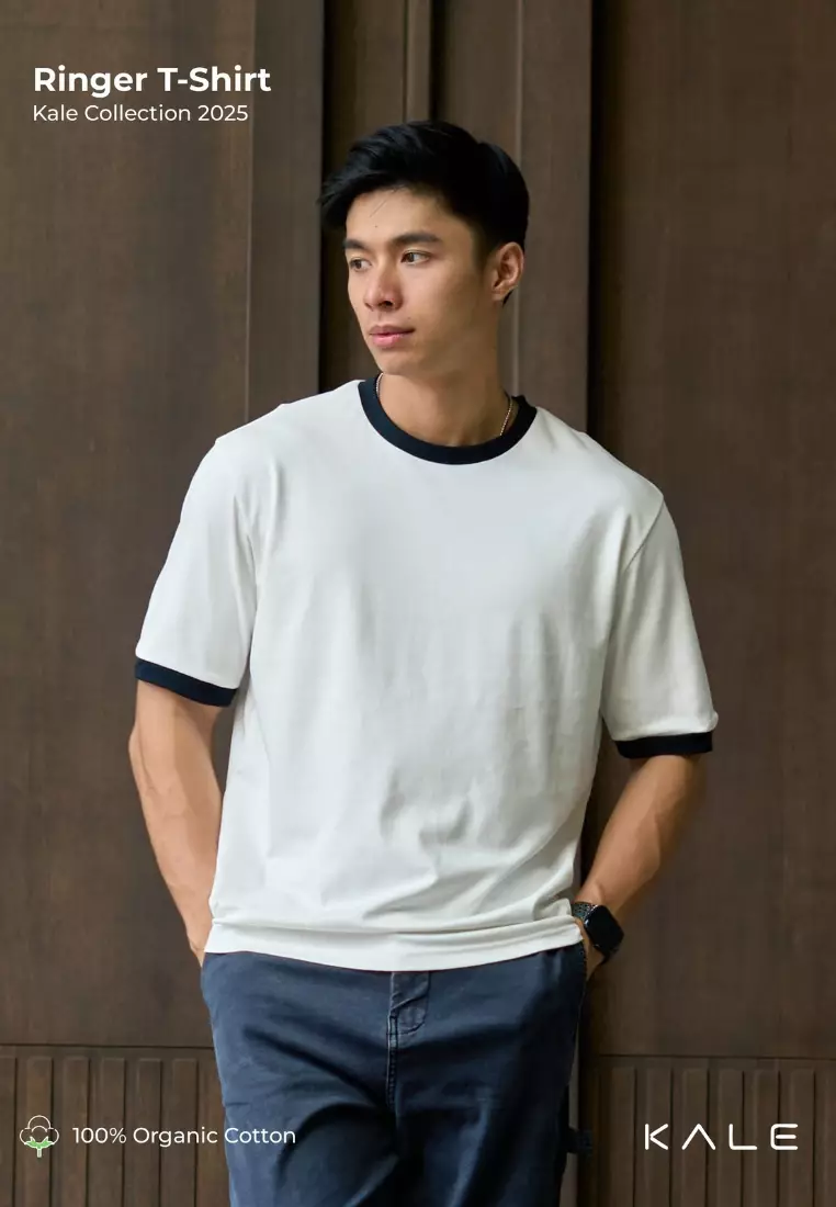 Kale Ringer White Black / Cotton Cloudy / Kaos Boxy Fit / Kaos Korea / Atasan Kaos Pria / Kaos Basic Pria