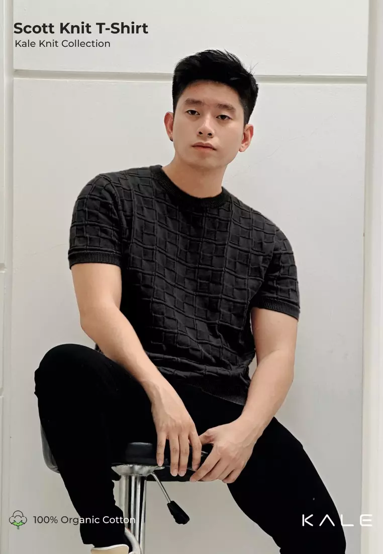 Kale Scott Black / Kaos Rajut Premium Pria Lengan Pendek Motif
