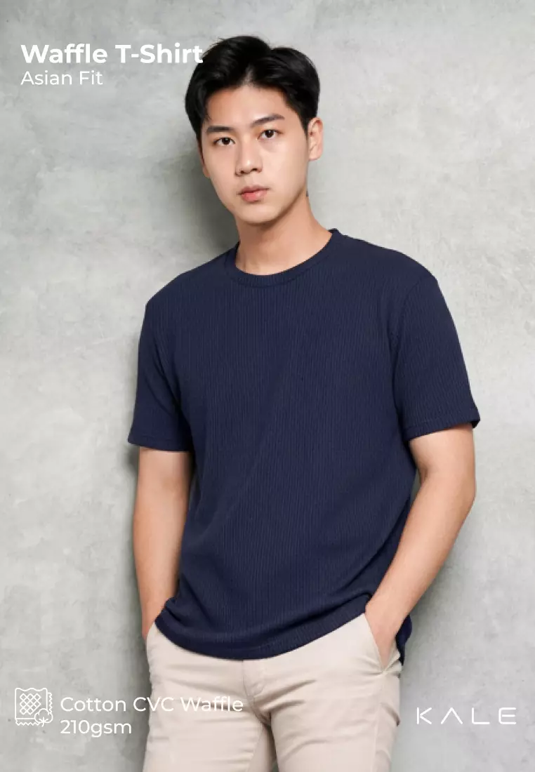 Kale Waffle Navy / Kaos Polos Tekstur Lengan Pendek Pria / Unisex