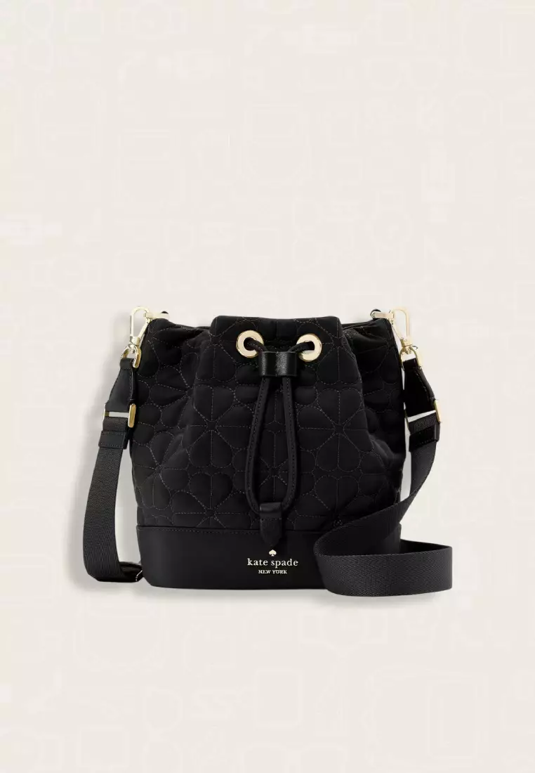 Kate Spade Spade Flower Quilted Fabric Bucket Bag Black