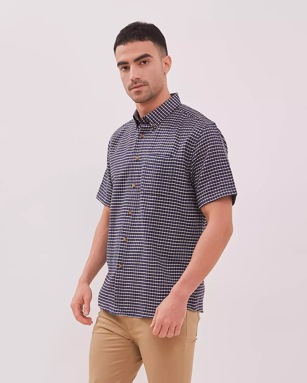 BLUE FLANNEL SHORT SLEEVE REGULAR SHIRT