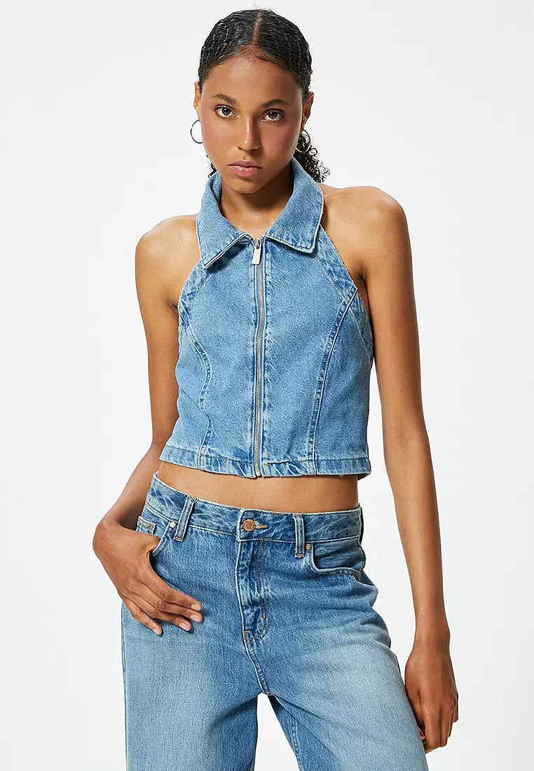 KOTONHalter Neck Denim Crop Top Zippered Backless Slim Fit689000.00