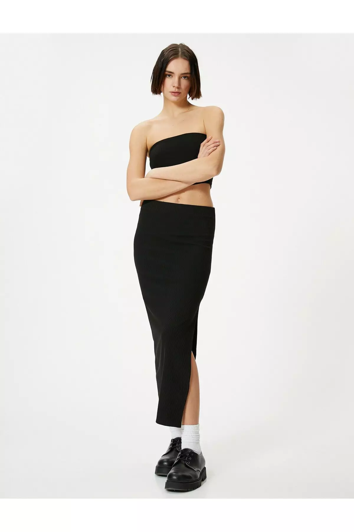 Long Pencil Skirt High Waist Ribbed