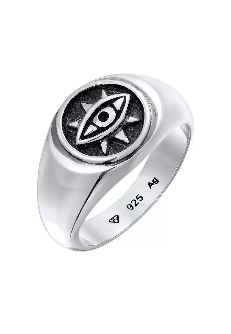 EXCLUSIVE Cincin Perhiasan Perak 925 Pria Evil Eye Signet