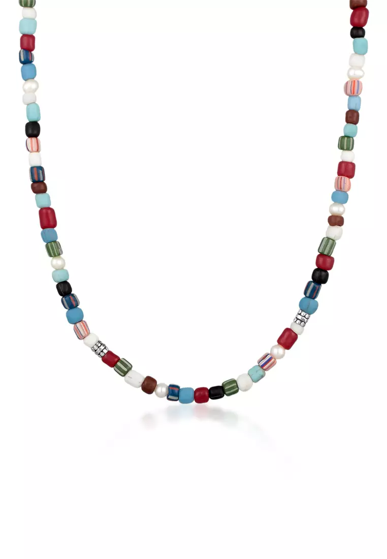 EXCLUSIVE Kalung Perhiasan Perak 925 Pria Glass Beads Colourful Trend Freshwater Pearls