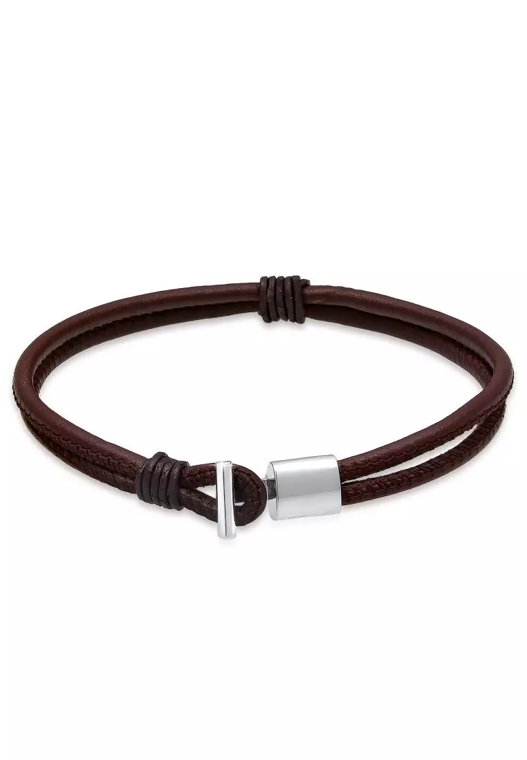 KUZZOIEXCLUSIVE Perhiasan Pria Perak Asli - Silver Gelang Layered Genuine Leather Knot Brown1139000.00