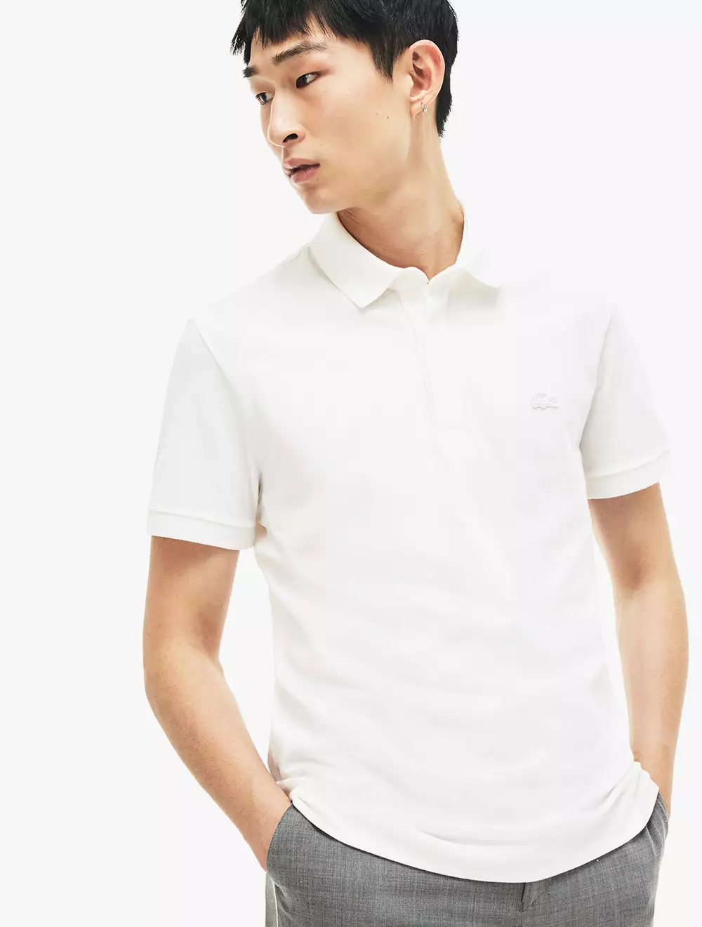 Men's Lacoste Paris Polo Shirt Regular Fit Stretch Cotton Piqué - White
