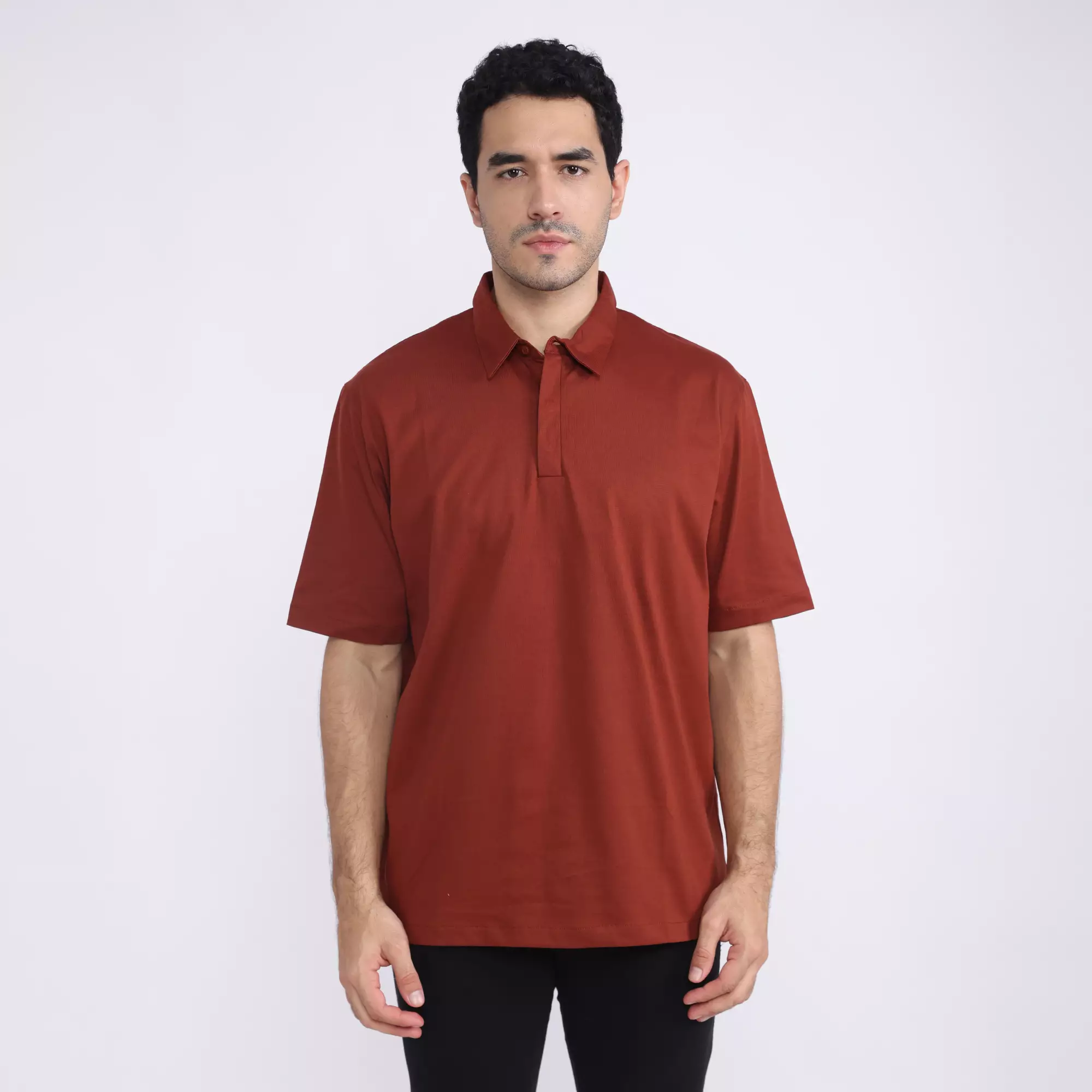 LARUSSO Buttoned Polo Basic Shirt - Dark Maroon