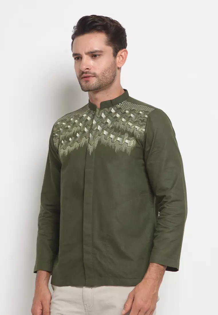 LARUSSO Kemeja Koko Bordir Katun Dobby Panjang - Cubic Army L086
