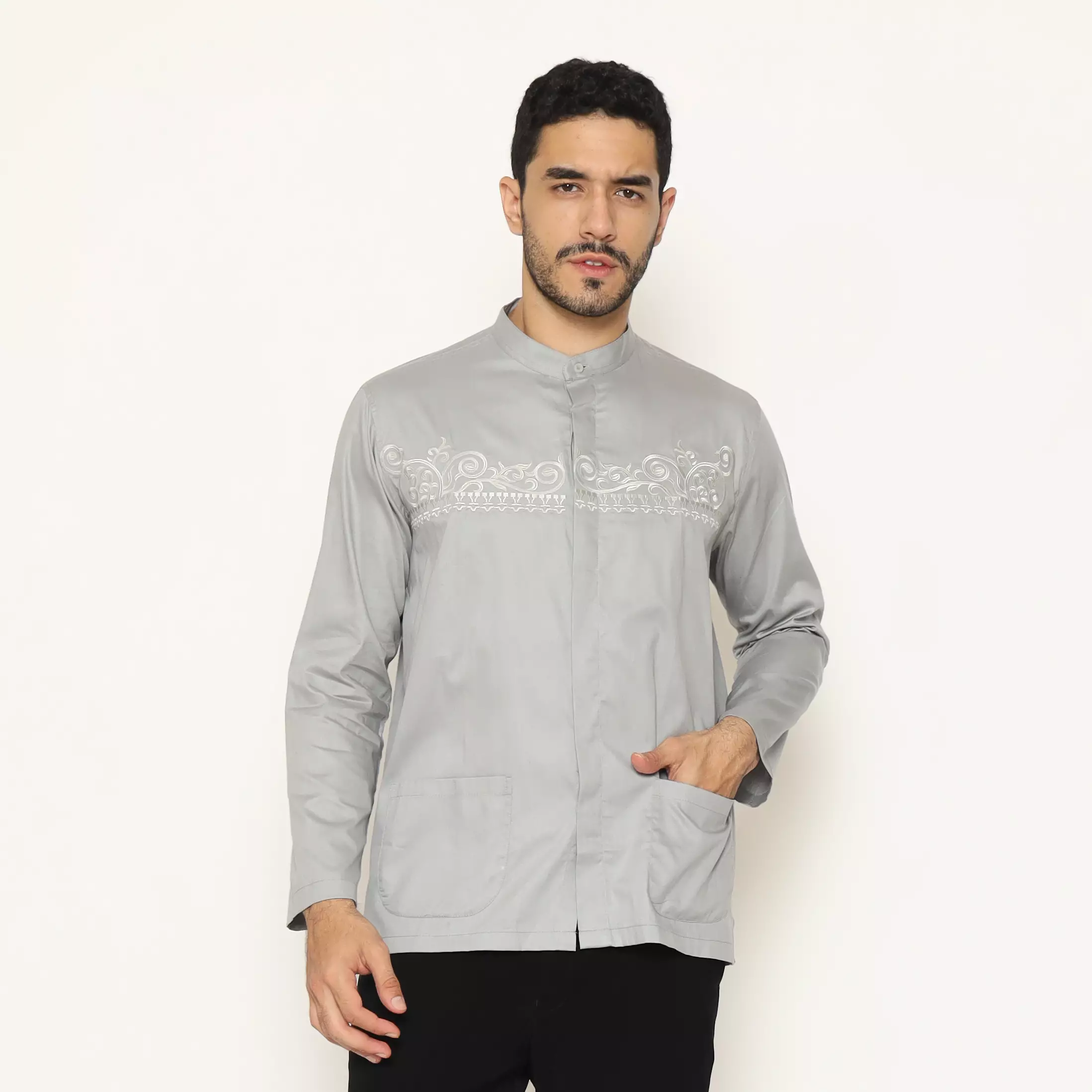 Lawell Baju Koko Pria Bordir Lengan Panjang Modern Fit Warna Grey – LAQKFLBKQG101QCTNQNM