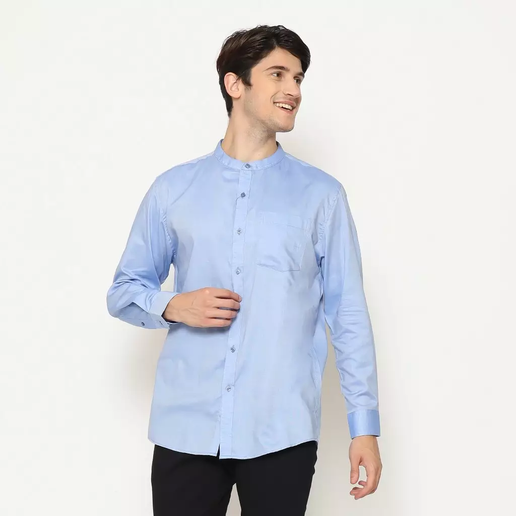 Lawell Baju Koko Pria Lengan Panjang Slim Fit Warna Light Blue – LAQKFLKKQO201QCTNQNM