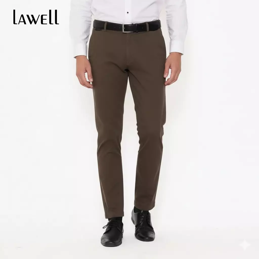 Lawell Celana Chino Panjang Pria Slim Fit - Bawahan Polos Branded Kualitas Premium | Nyaman untuk Kerja & Kasual | Warna Dark Brown