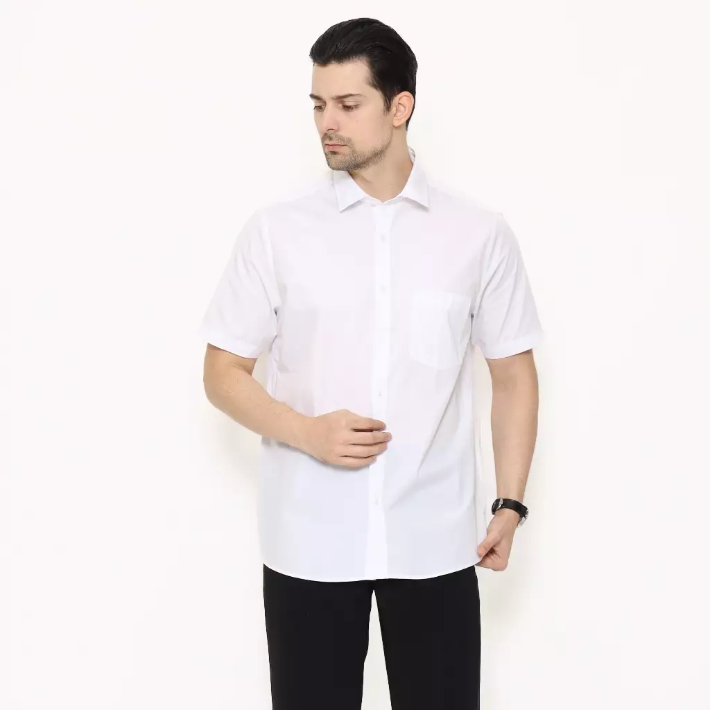LAWELL DESMOND-MSRF Kemeja Formal Pria Putih Lengan Pendek Regular Fit Polyester Cotton