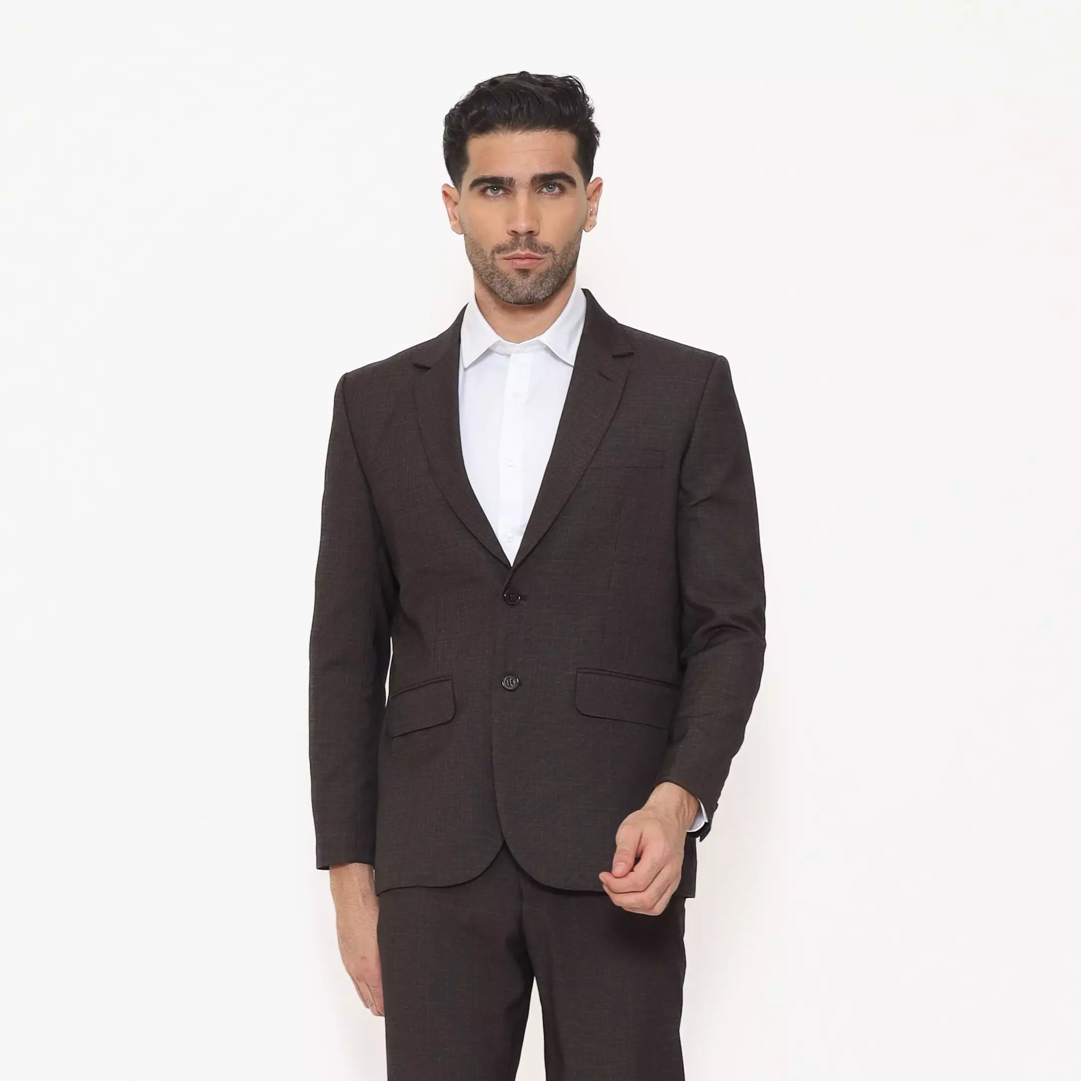 LawellLawell Jas Formal Pria warna Dark Brown – Polyester Viscose Stretch | Motif Garis Halus (Oxford Sedang) | PETTER1299000.00959900.00