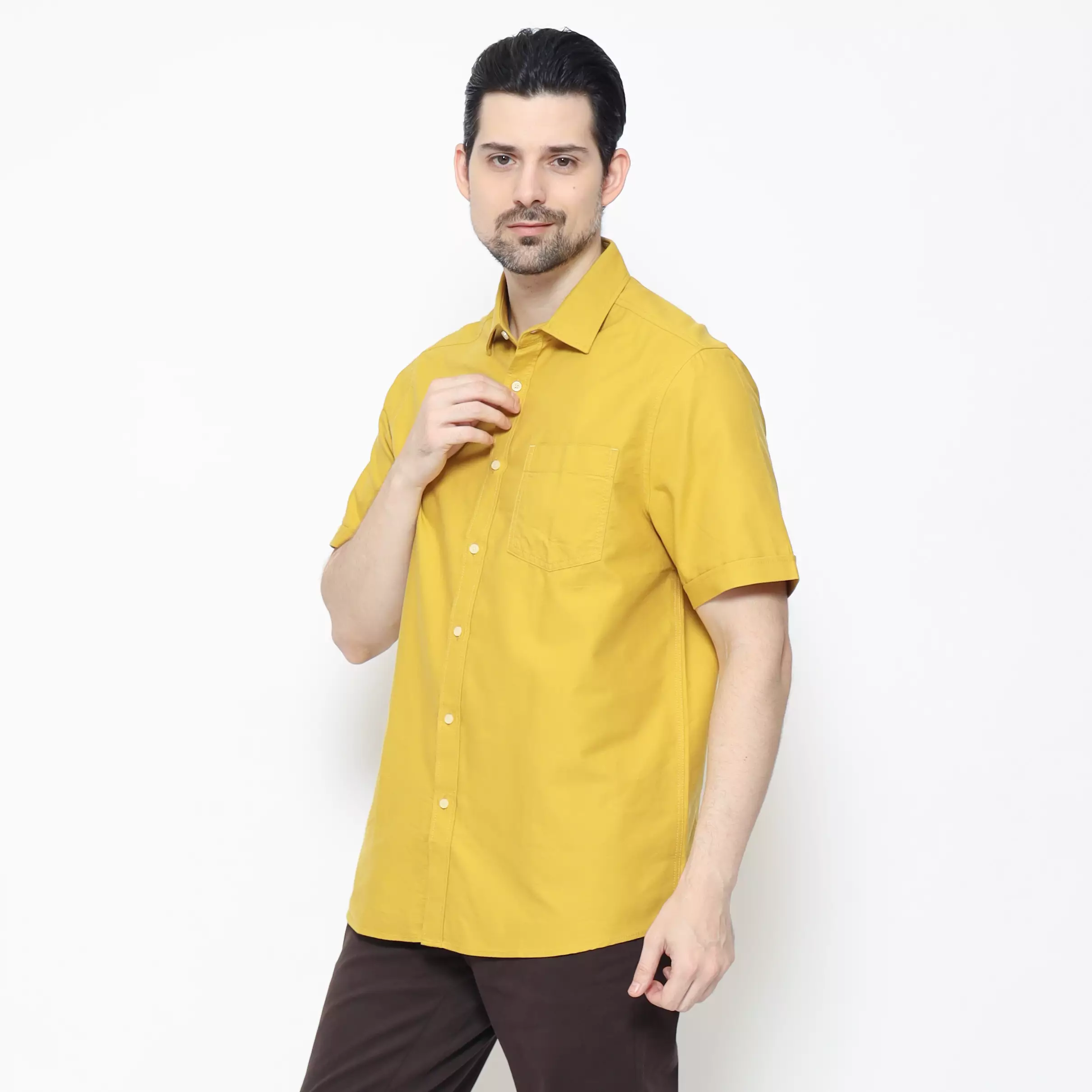 Lawell Kemeja Casual Pria Lengan Pendek Regular Fit Warna Yellow – Cotton Oxford Kecil – KING-MSRC