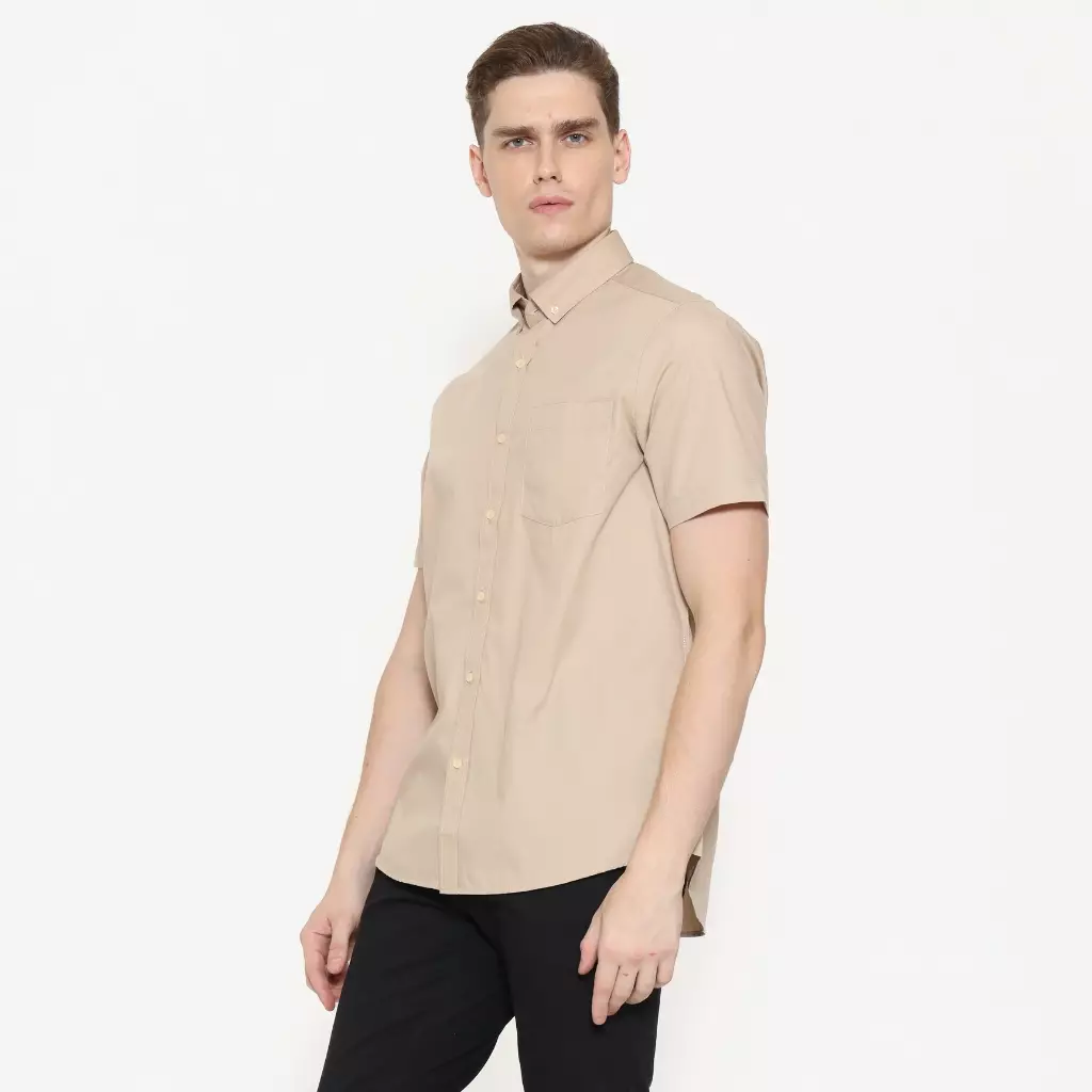 Lawell Kemeja Pria Polos Lengan Pendek Regular Fit – DESMOND-MSRF-SAN | Sand | Easy Care, Wrinkle Resistant