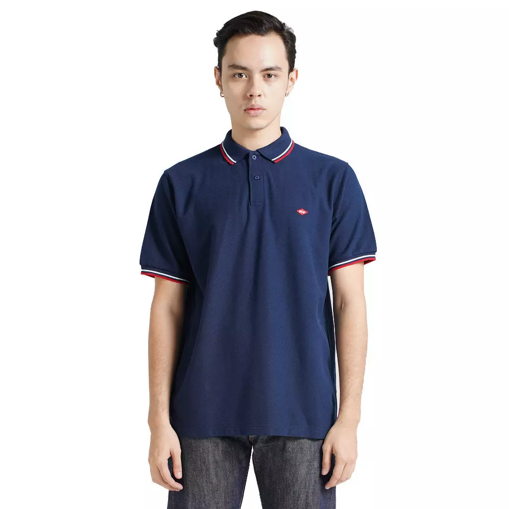 Lee Cooper Polo Shirt Stripe Diamond Logo Navy