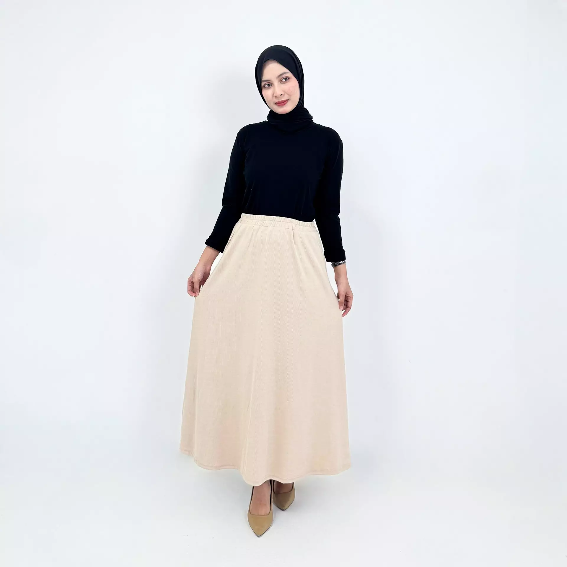 Ani Knit Skirt [KREM] Rok Panjang Wanita Muslim