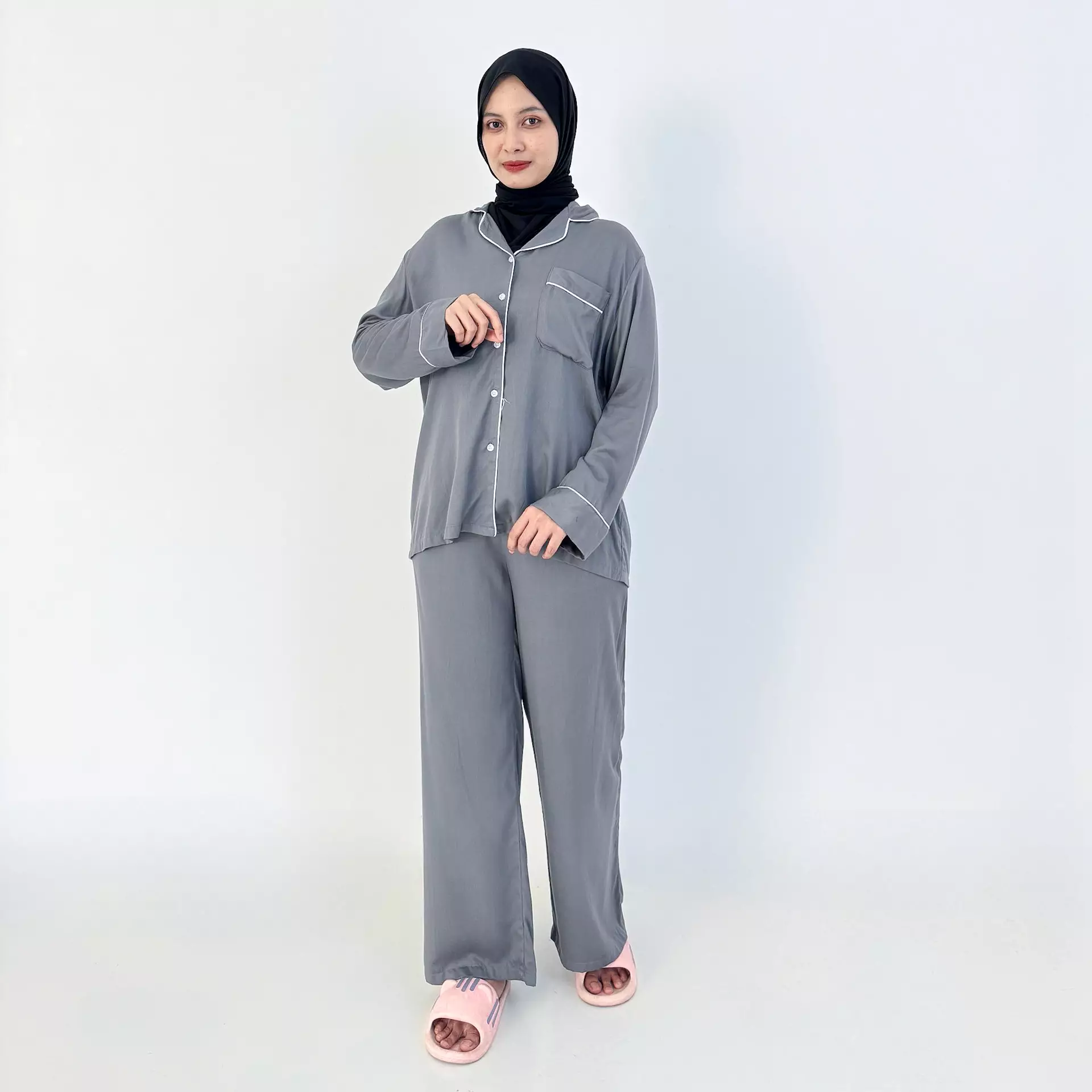 Baju Tidur Serena Set | Size L-XXL ABUABU | Setelan Piyama Lengan Panjang Wanita Katun