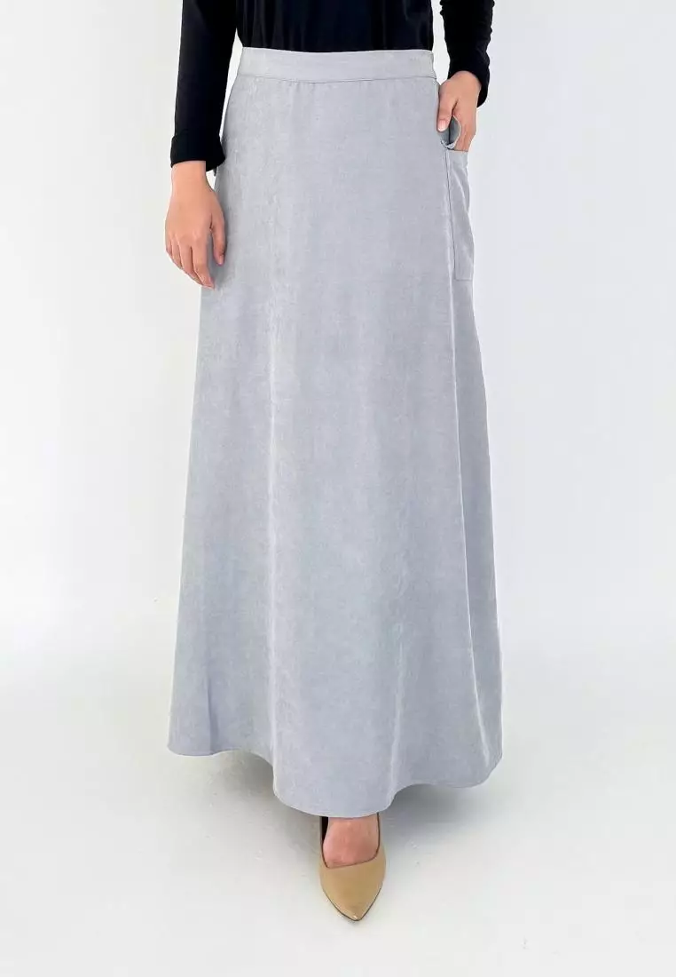 Carla Suede Skirt (Rok Panjang A-Line) ABU MUDA