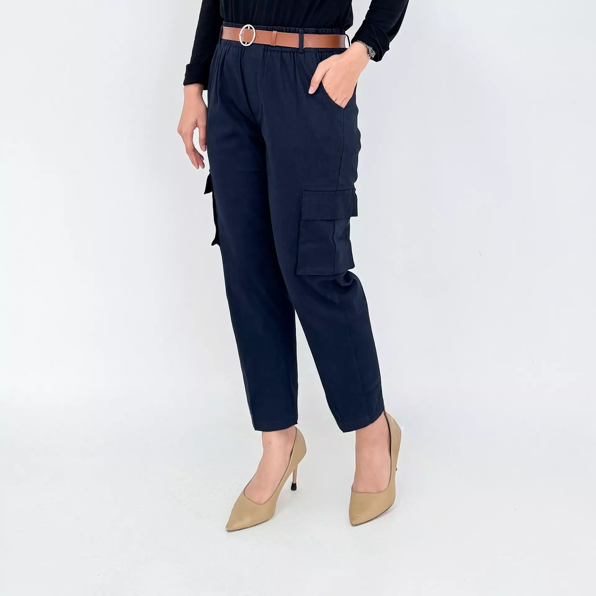 Celana Panjang Katun Wanita - Long Pant Twill Cargo - NAVY