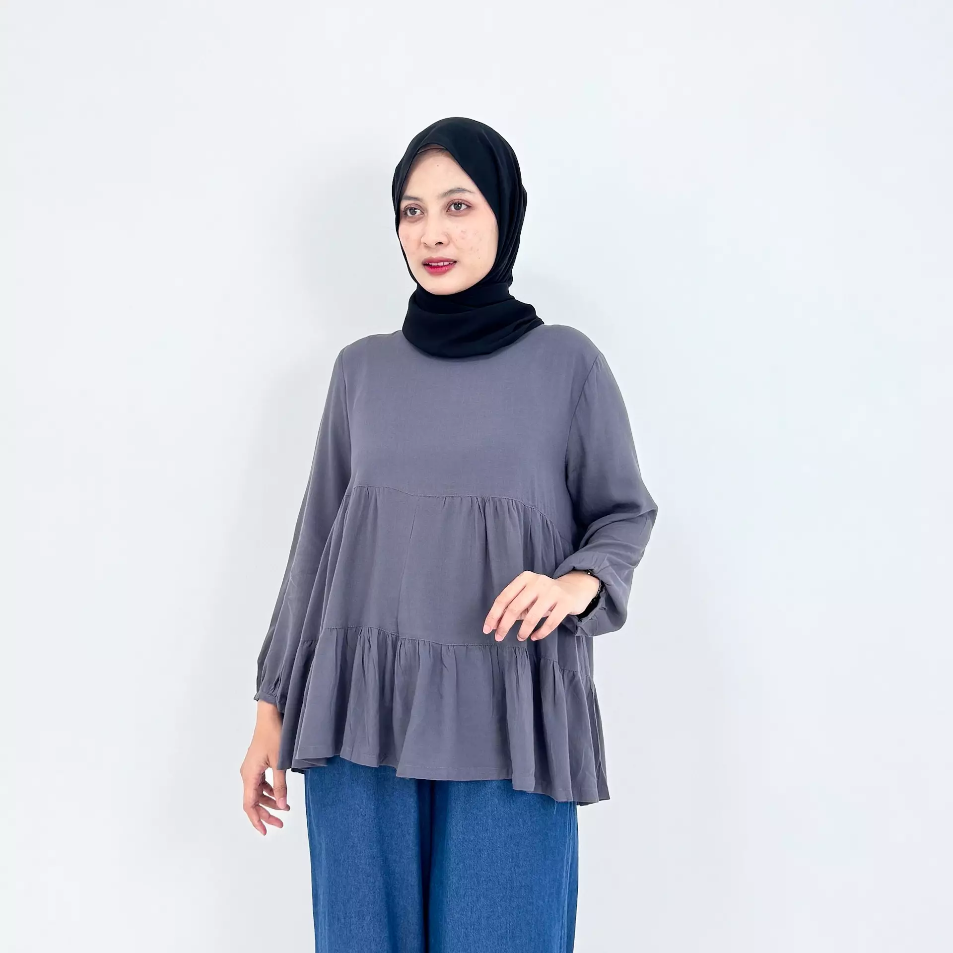Cotton Blouse Nanda - GREY - Atasan Lengan Panjang Wanita Katun Basic