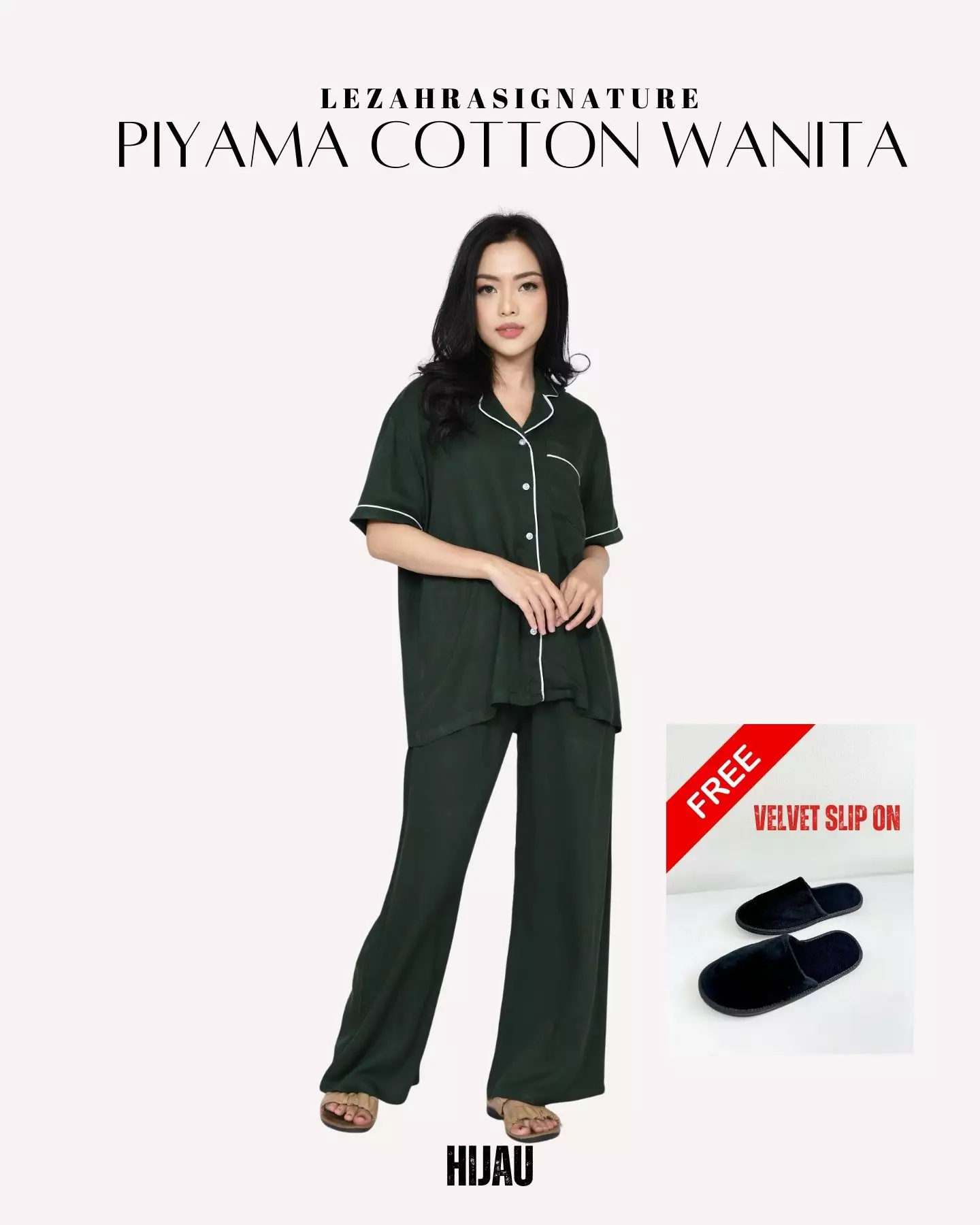 LEZAHRASIGNATURECotton Oversized Rae HIJAU Set Piyama Celana Panjang Polos FREE SLIP ON699000.00479000.00