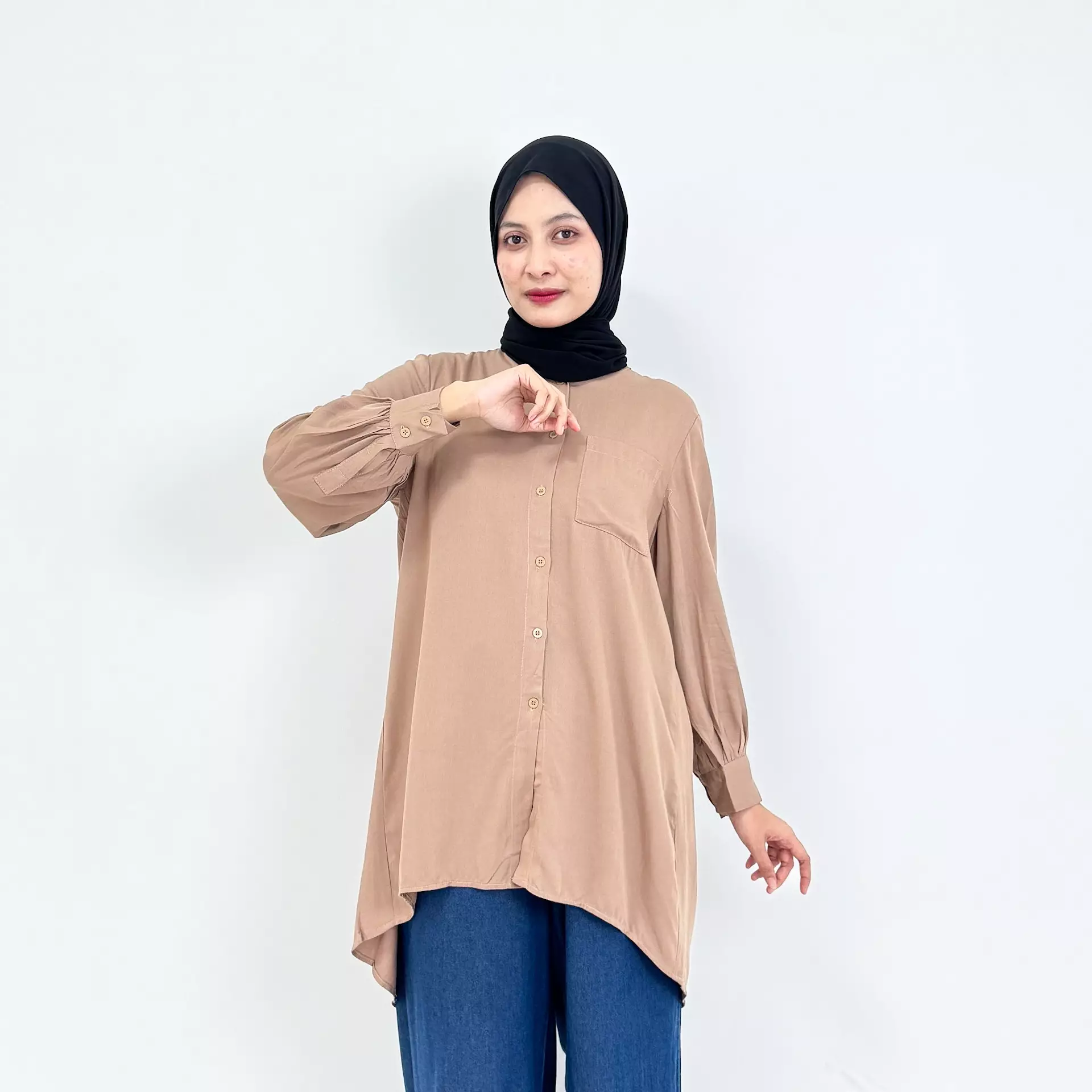 Cotton Tunic Nisa -BROWN- Atasan Lengan Panjang Wanita Tunik Basic