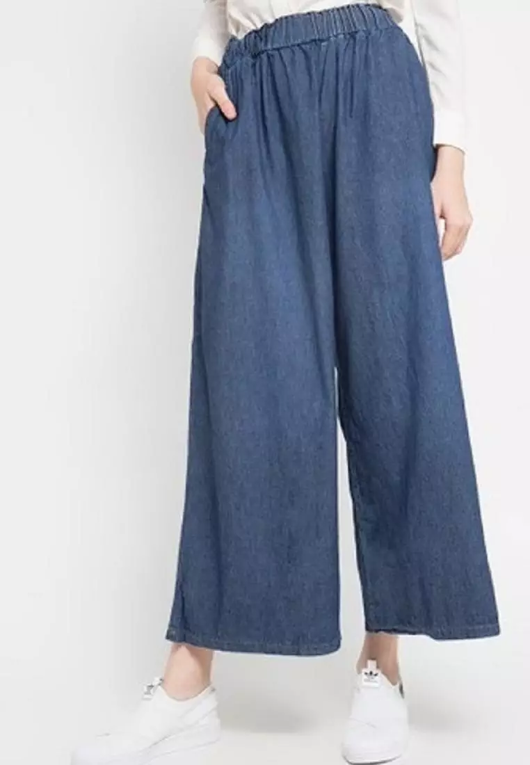 Denim Palazzo Kelly (Celana Kulot Bawah Lebar) Dark Blue