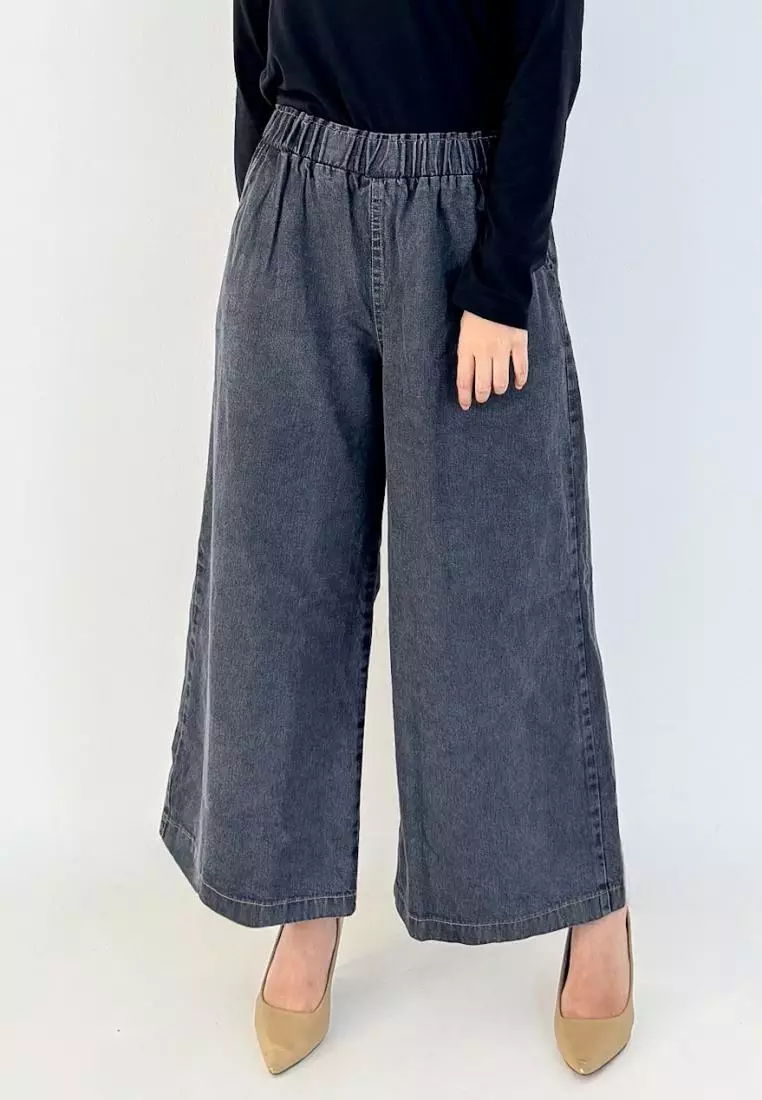 Denim Palazzo Kelly (Celana Kulot Bawah Lebar) Hitam Snow