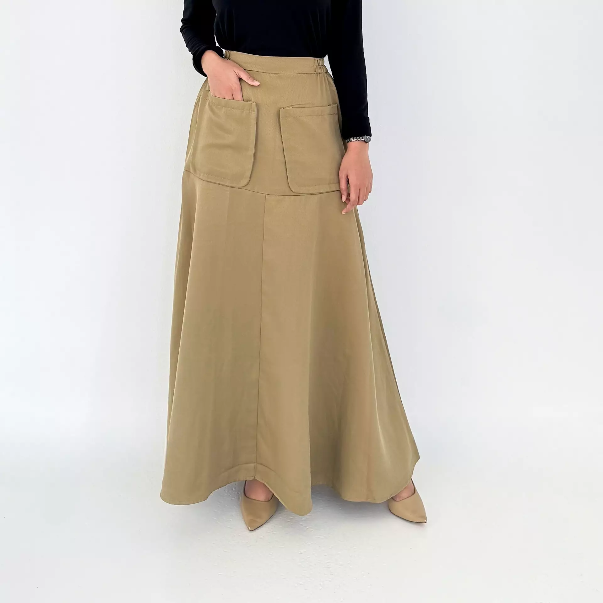 Flare Skirt Agatha (Rok Panjang Katun Wanita) Coklat