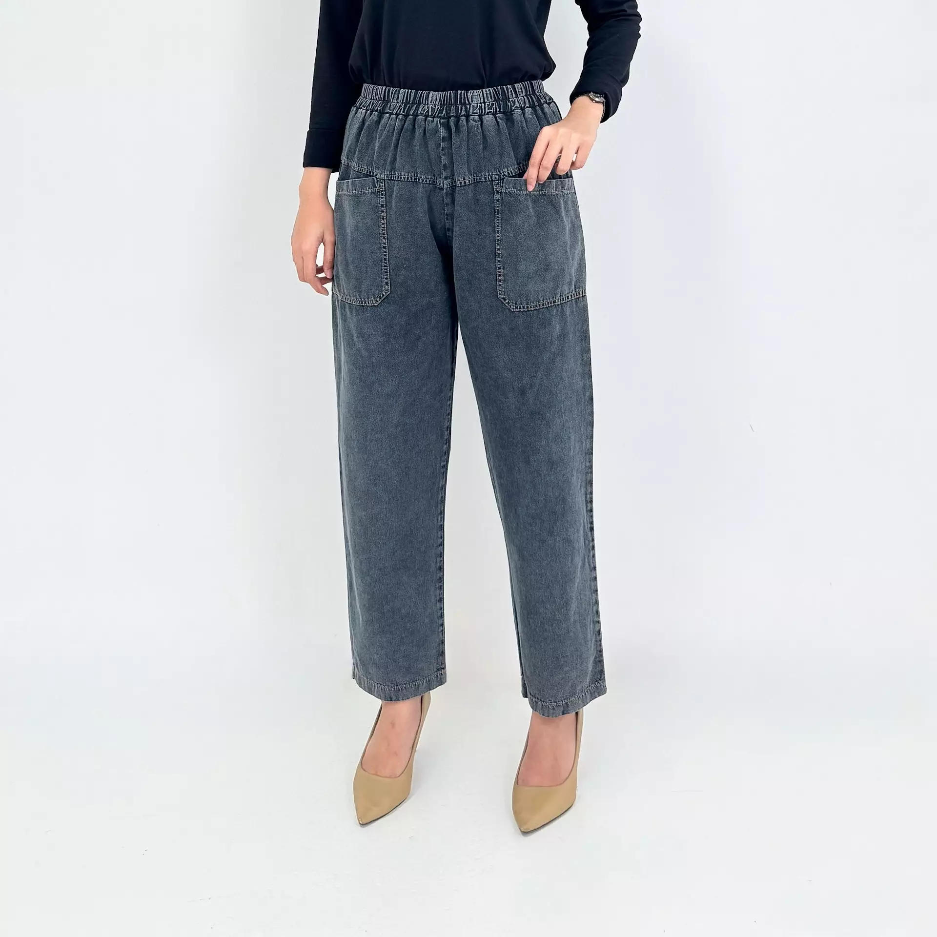 Ina Baggy Denim Pants SNOW BLACK Celana Panjang Soft Jeans Wanita