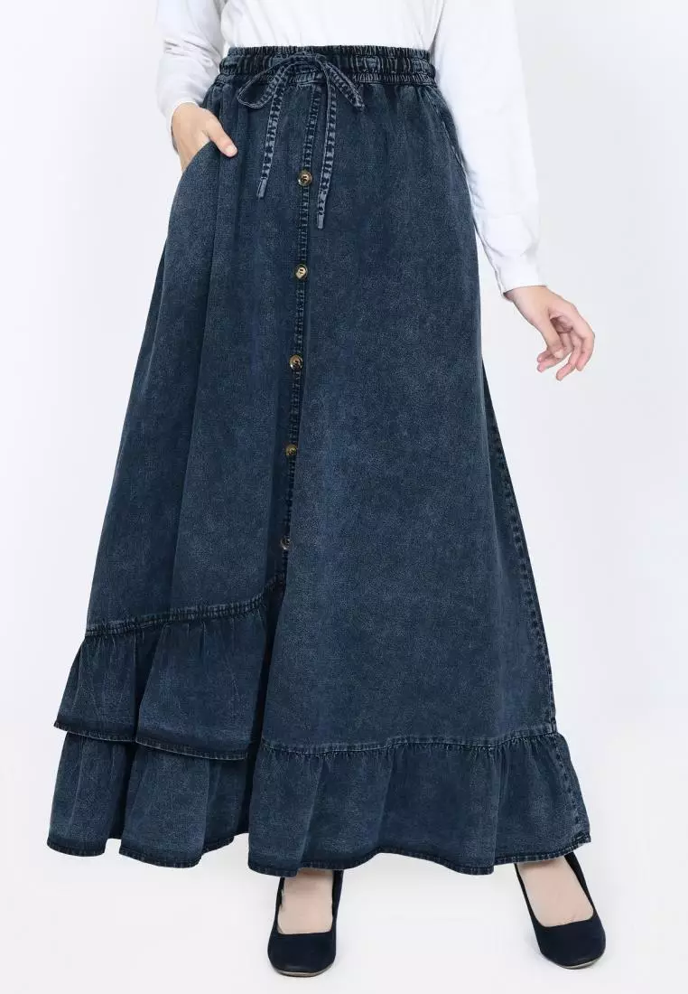 Inara Denim Skirt (Rok Panjang Soft Jeans A-Line) Snow Black