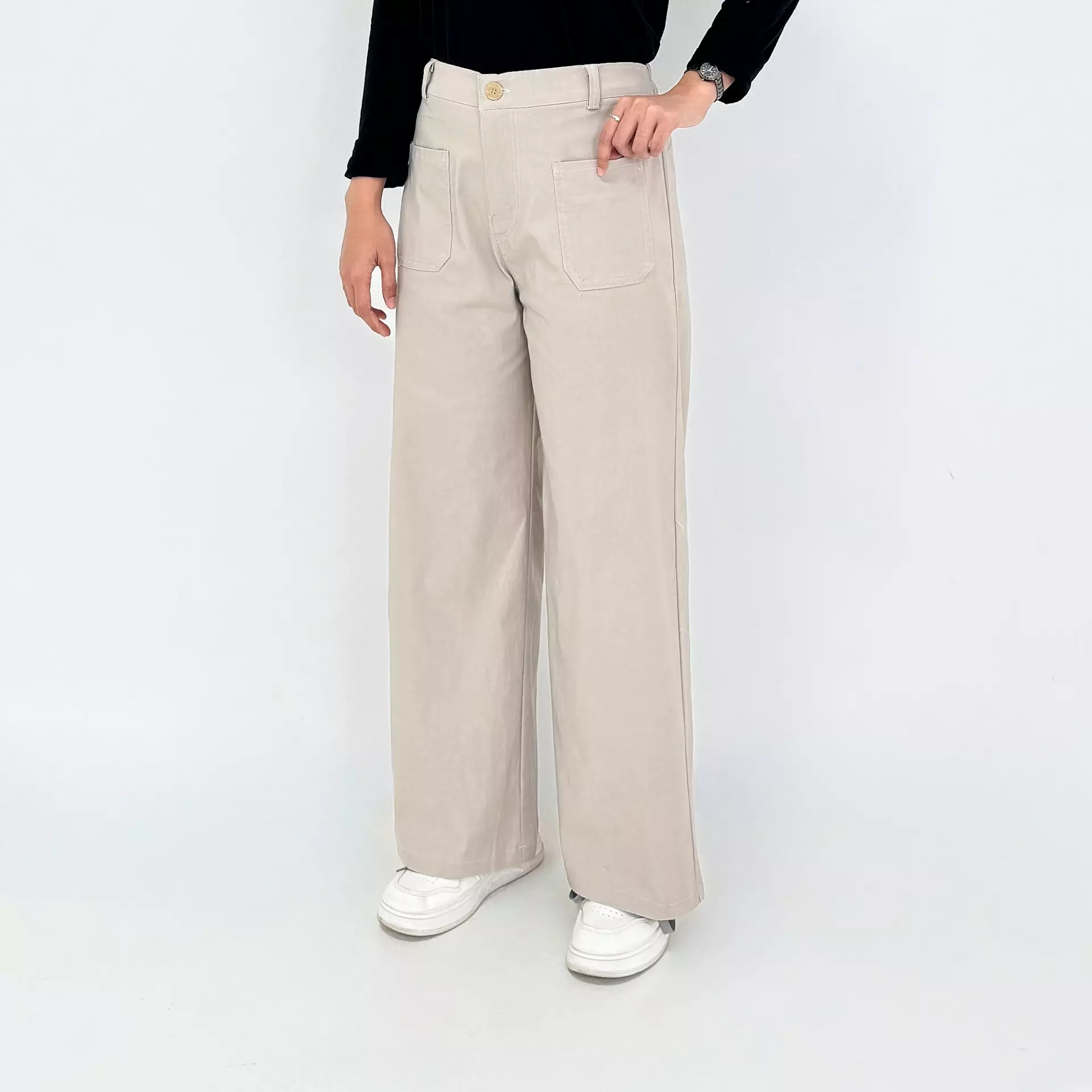 KALUNA WIDE BASIC PANTS Celana Panjang Katun Wanita KREM